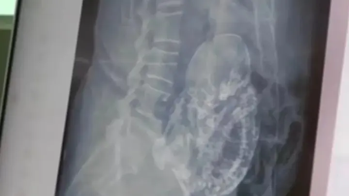 ويعتقد الأطباء أن الجنين قد تكلس، في حدث نادر للغاية يسمى “الجنين المتحجر أو المتكلس”.