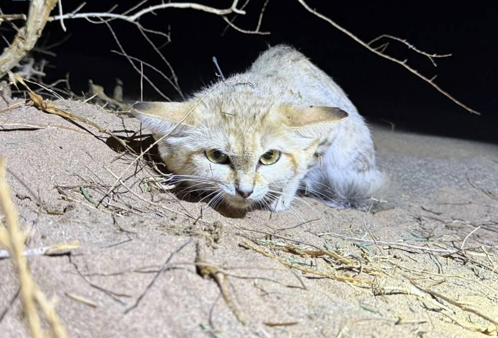 إذ أمسك الفريق البحثي في المحمية بست من قطط الرمال بشكل آمن وتثبيتها بالأطواق، وأخذ عينات منها، وذلك باستخدام تقنيات التتبع عبر نظام تحديد المواقع العالمي، واستخدمت التحليل الجيني لإنتاج أشمل قاعدة بيانات علمية جمعت لهذا النوع على الإطلاق.
